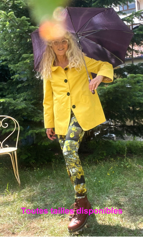Le plus de la matière | Traitement déperlant ! Comme les grenouilles, mes petits imperméables ne craignent pas l’eau ! Gabardine au titrage très fin, au mélange intime de coton et polyamide, elle offre un aspect serré, structuré, satiné et couture. |