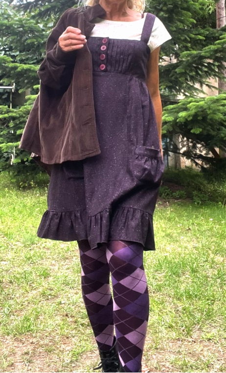 Chasuble, elle se prête à tous les jeux. Vous pouvez glisser une chemise, un top, un petit pull, col montant ou pas. La porter en bottes hautes ou basses, lourdes ou pas, en creepers ou sneakers !