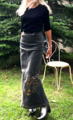 Une magnifique branche de cerisier en fleurs attire le regard. En fil satinés serrés pour les pétales, déliés pour les branches, les tons cuivrés, camel sont juste ce qu'il faut lumineux pour à la fois embellir la jupe, et ne pas contrarier vos envies de pulls, tops, chemises ou manteaux. Tout matche.
