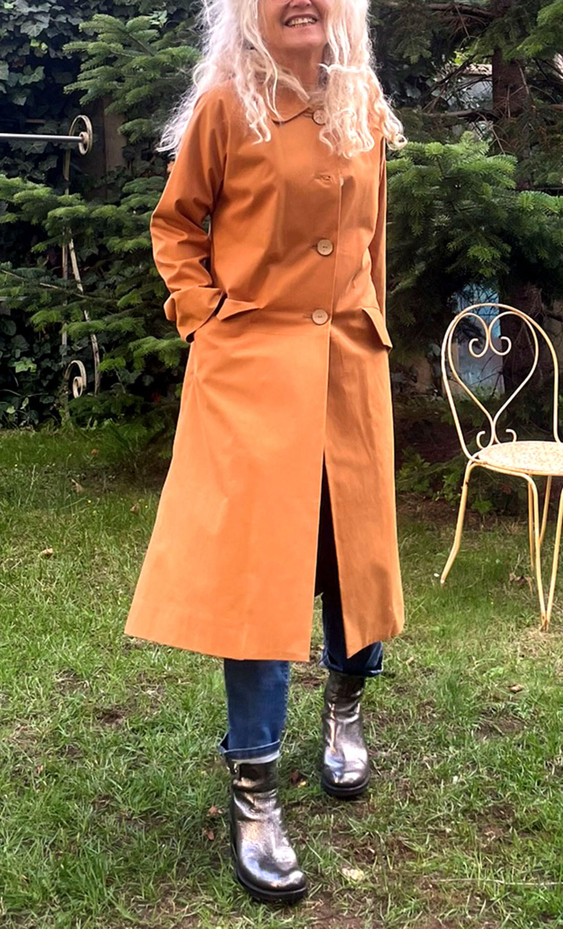 Appropriez-vous cette pièce unique, un manteau demi-saison d'une incroyable et lumieuse couleur caramel digne de nos plus beaux automnes...