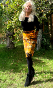 La coupe est absolument parfaite, crayon, à la pointe du genou, pinces dos et devant. La ceinture un peu haute, fermée par deux boutons, allonge la silhouette.