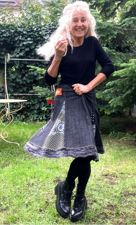 La taille n'étant pas marquée, la jupe peut se poser plus ou moins sous le nombril. Possible pour une dame 40 ou 42.