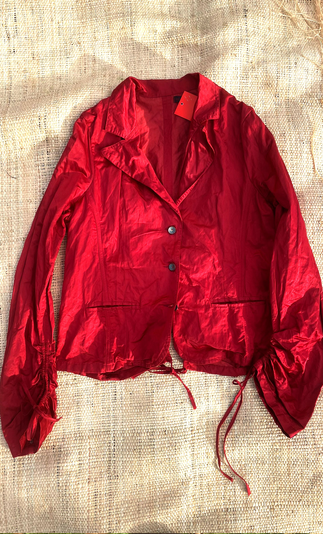 Mon conseil : notre fournisseur vend son tissu comme étant lavable. J'en ai confectionné des kilomètres. Pour autant, ne cherchez pas à laver votre veste, ce n'est tout de même pas du coton ! Et les lavages finissent par dénaturer le sublime aspect velouré du satin.