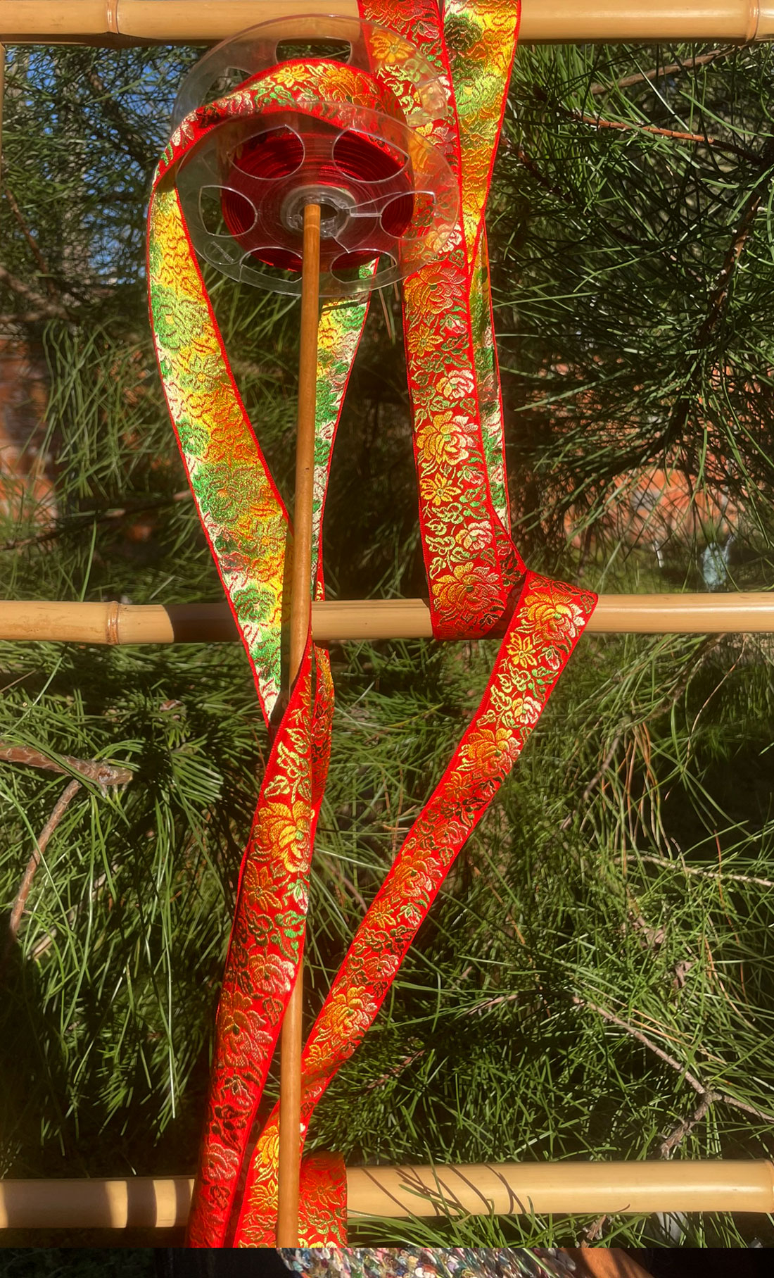 Ruban jacquard viscose, imprimé fleurs, droit fil.
