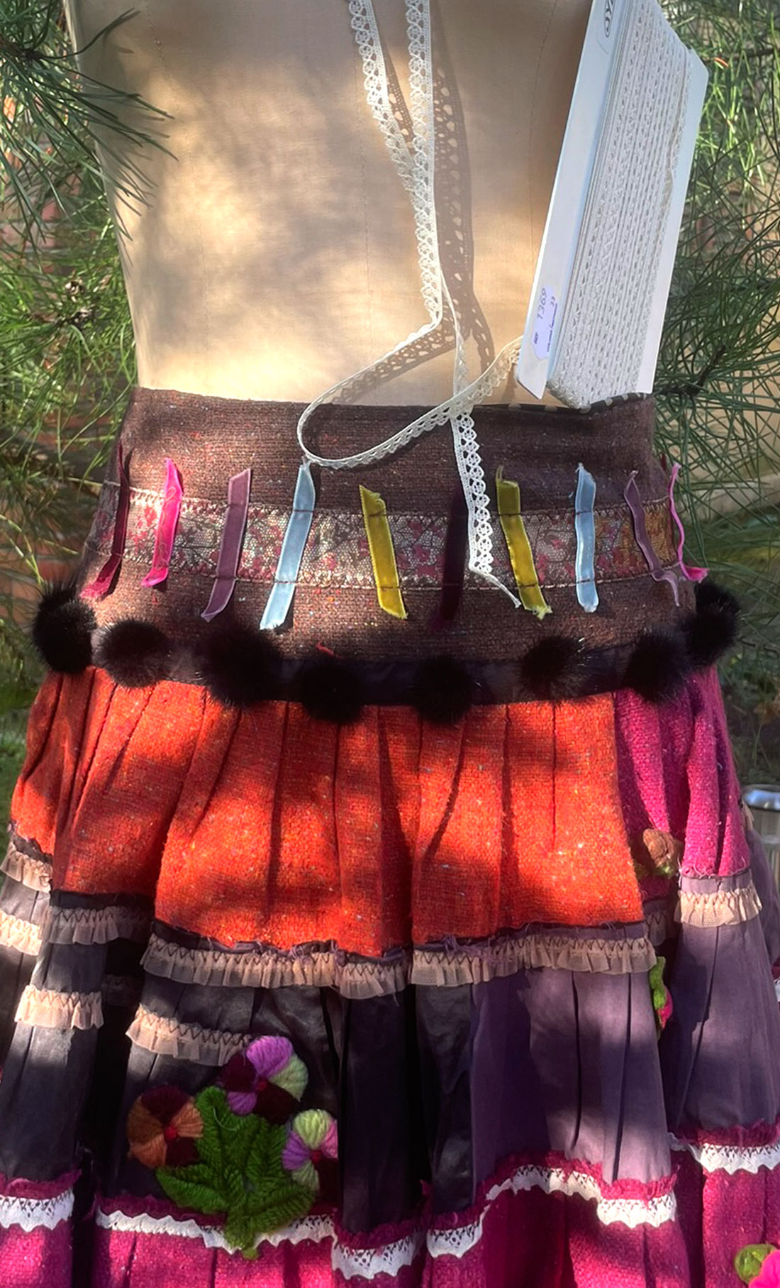Amusez-vous, agrémentez vos encolures et emmanchures, chapeaux, pochettes, détournez, inventez ! Inspirez-vous de cette jupe qui fit le bonheur de ces dames il y a plus de vingt ans...