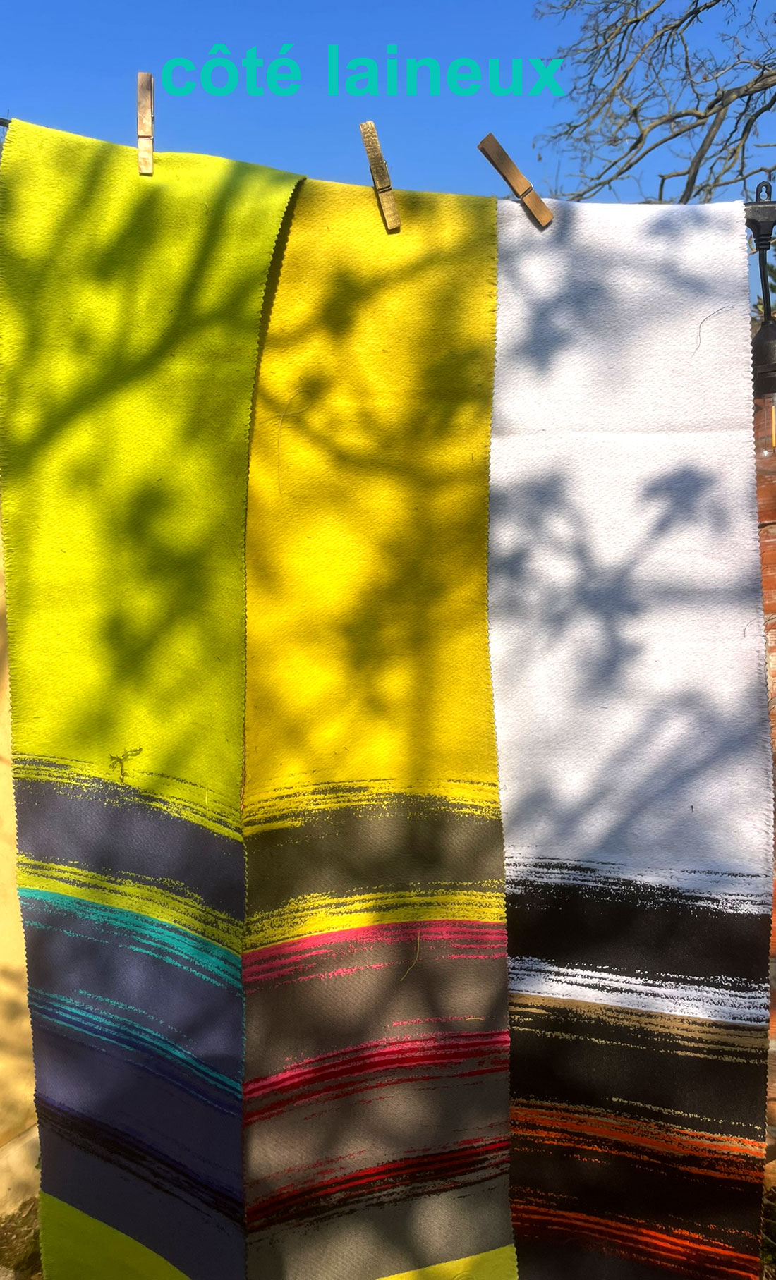 Ce que l'on appelle dans mon métier les swatchs, et les coups de cadre, ce sont les bouts de tissu, élaborations des tisseurs, lainiers, cotonniers, soyeux, imprimeurs, brodeurs, denteliers etc... pour présenter leurs collections. Les frais de collections sont considérables, et petits ou grands morceaux, c'est de l'art, c'est précieux !