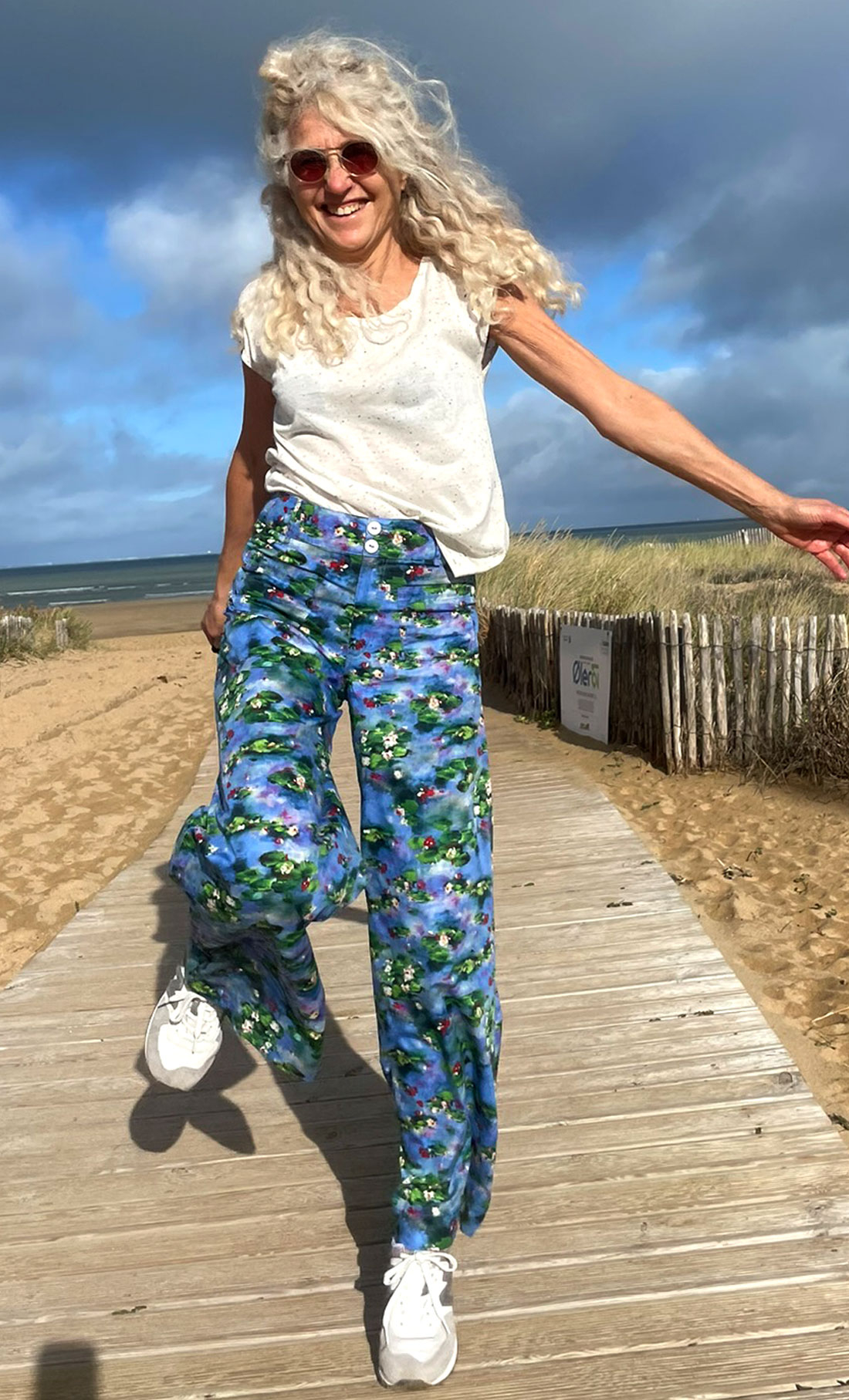 le pantalon s'évase depuis le haut : 40 cm sur la chaussure !
