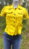 Entre l'exquise féminité et le casual chic : découpes surpiquées et petits rabats de poches comme une veste western, mais adorables manches froncées et ligne cintrée.