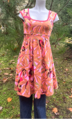 Lumineuse avec son coletage rose fuchsia qui court autour du décolleté.